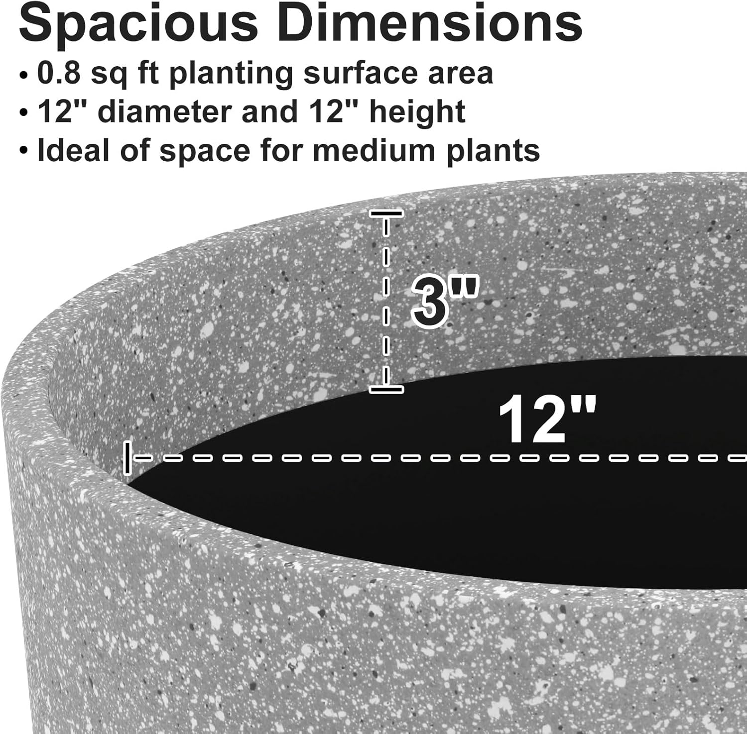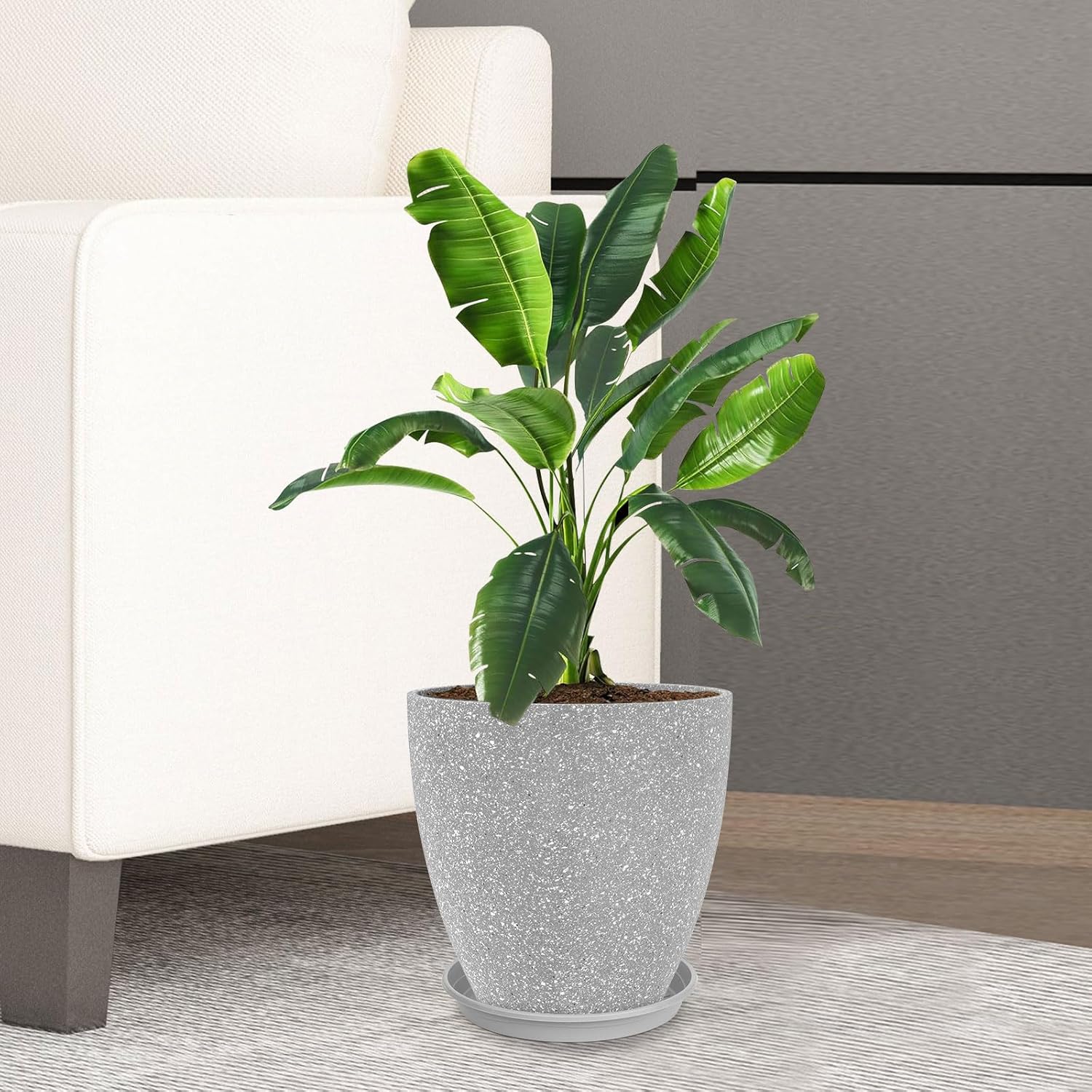 CLGardenLTD Flower Pot Indoor - Outdoor Plant Pot - Gray Rough Planter - Elegant Stone Imitation - 12" Diameter 12" Tall with Drainage Holes and Saucer
